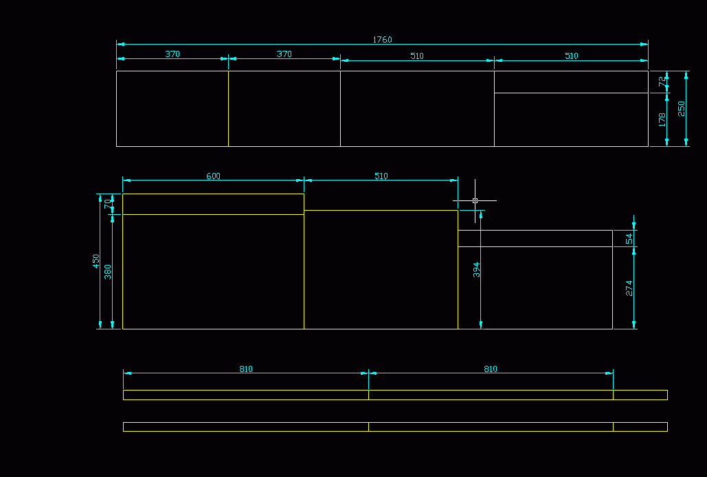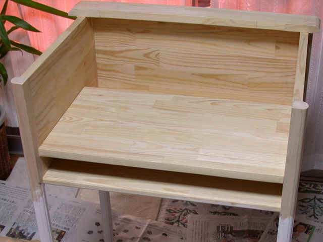 本体: パイン集成材で、180cmx45cm、180cmx25cmを各1枚ずつ。