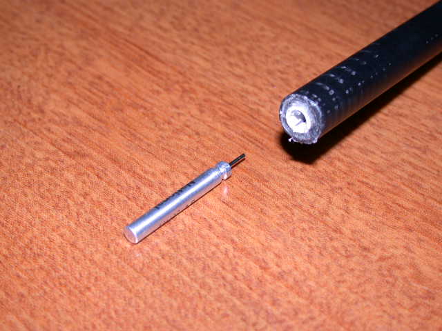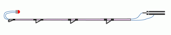 (2) 並継ぎの投げ竿。中に電線を通すので竿先径は3.2mm程度またはそれよりより太いものが作業しやすい容易。
