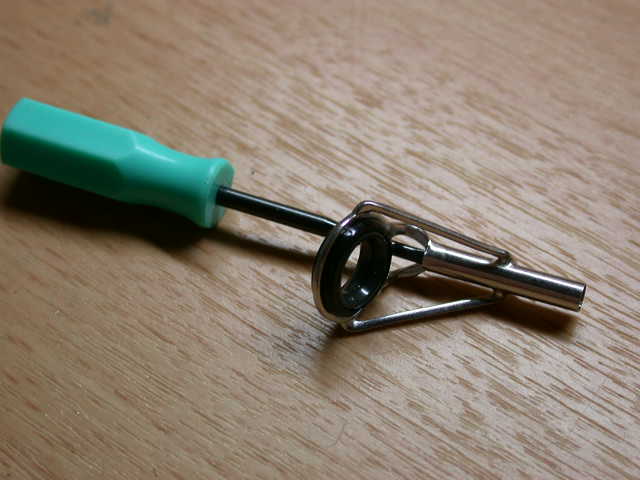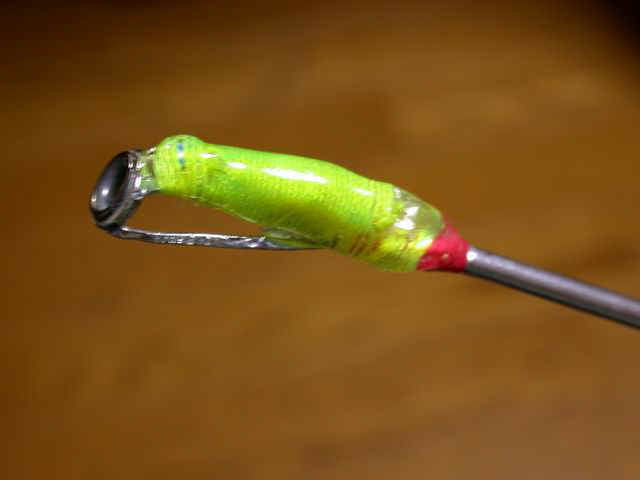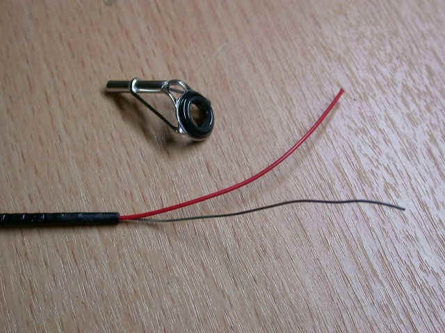 (2) 竿先ガイドは、リード線を引き込めるように中空部を広げておく。