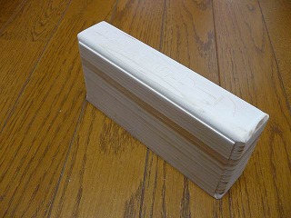 端板はパインのハギレ材38mm厚。 クラブ名が写真撮影時に写り込むように上面に名前を彫り込む。 |