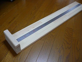 台板にスケール厚さ分の溝加工。 スケール端が端板部に密着するように端部を一段深く掘り込む。 |