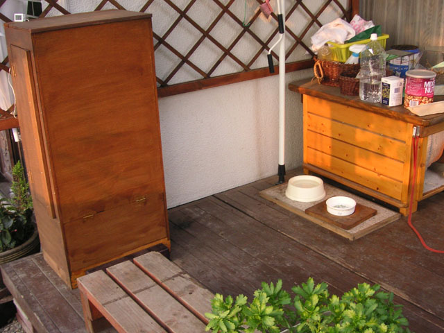 まりちゃん(わんこ)の小屋を置いているウッドデッキに間借りしてます。