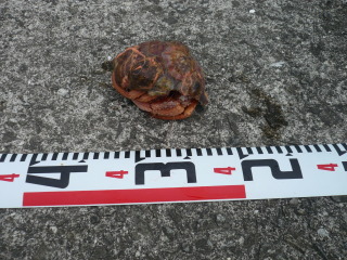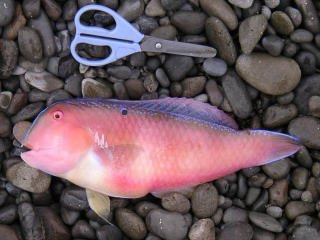 | その前にいちおう検寸。 他には、ゴンズイ、サメなど外道ばかりで記録は結局無し。 |