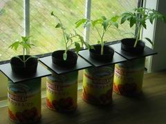 タンク:空きトマト缶(トマト苗が似合う) 内面樹脂コーティングがあって耐久性良好 |