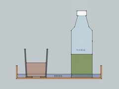 水面が側面穴上縁より高い間は、空気がペットボトルに入れないので水は落下してこない。
