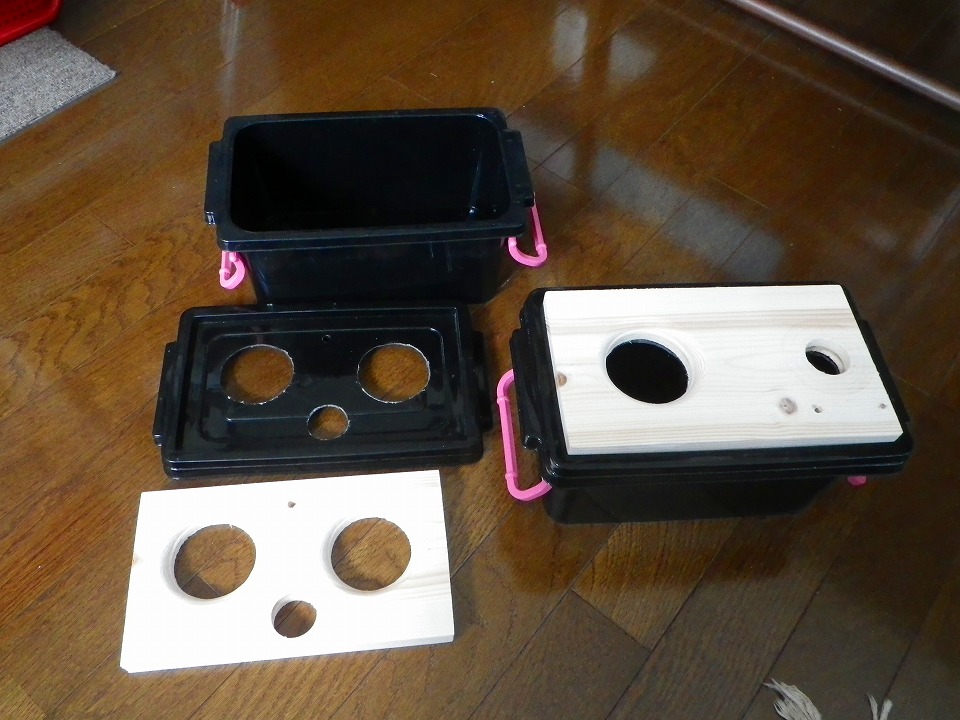 木の板をふたに重ねて補強しました。 |