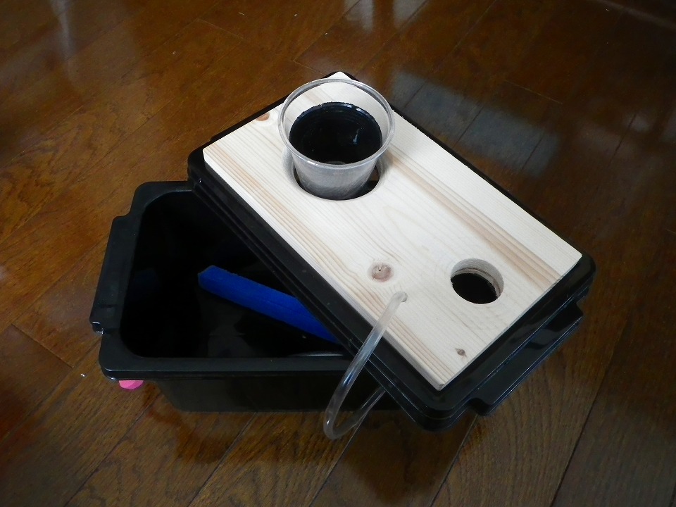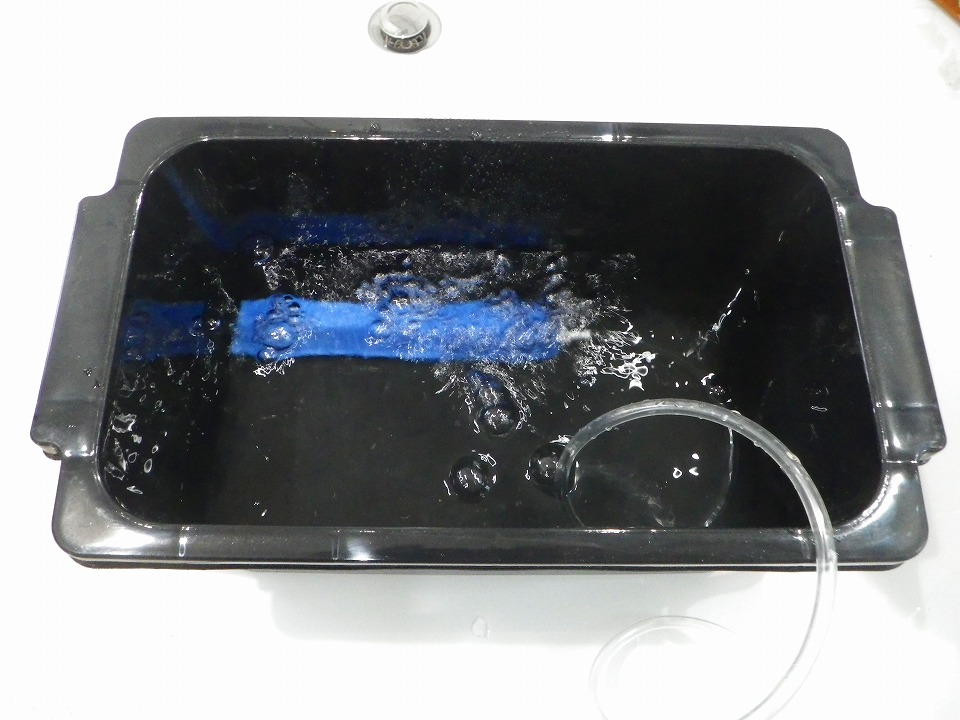 エアポンプからホースでエアを送り込み