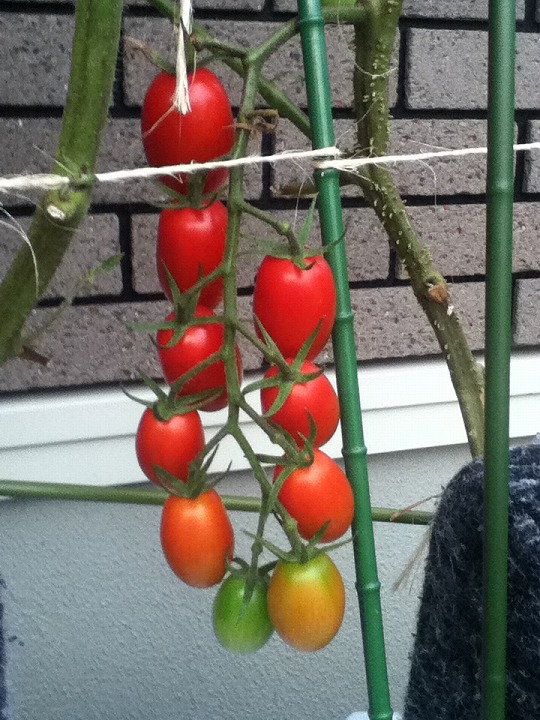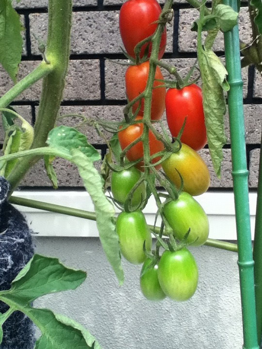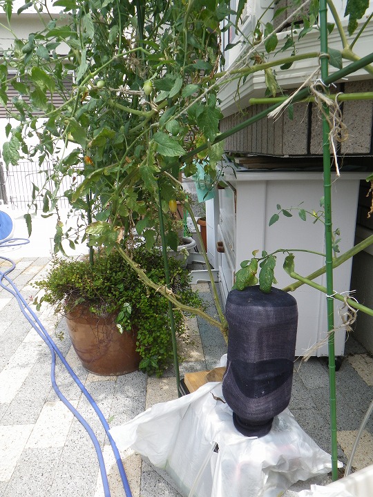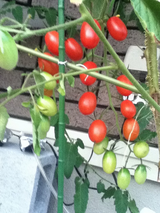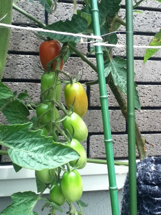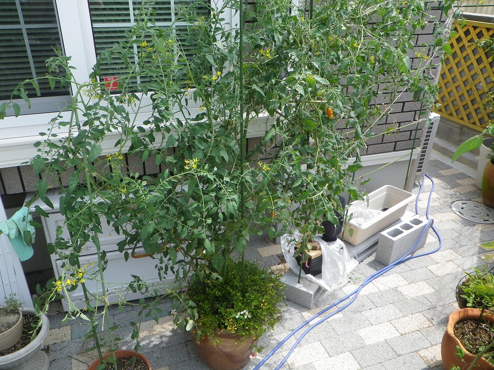 奥にある一本のトマトの枝が広がって